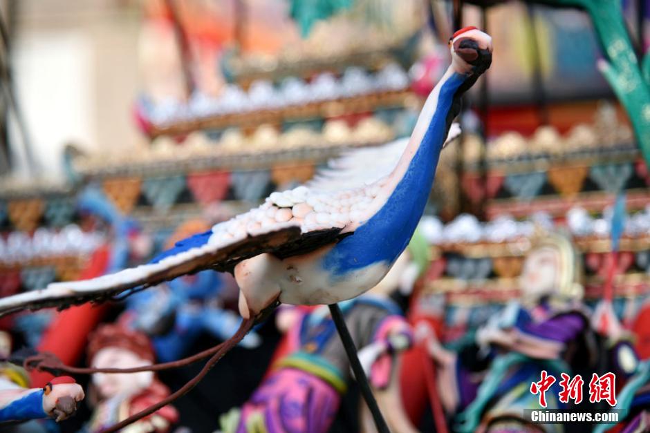 图为塔尔寺艺僧用酥油制作的仙鹤。赵凛松 摄