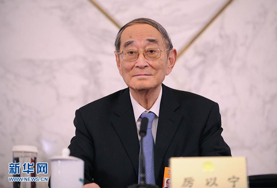 3月6日下午2时30分,全国政协十二届三次会议召开记者会,邀请全国政协常委厉以宁、李毅中、陈锡文、林毅夫以及全国政协委员杨凯生、常振明、贾康谈主动适应经济发展新常态促进经济平稳健康发展并回答记者提问。图为全国政协常委,民盟中央原副主席,北京大学社会科学学部主任、光华管理学院名誉院长厉以宁回答记者提问。新华网/中国政府网 翟子赫 摄 图片来源:新华网