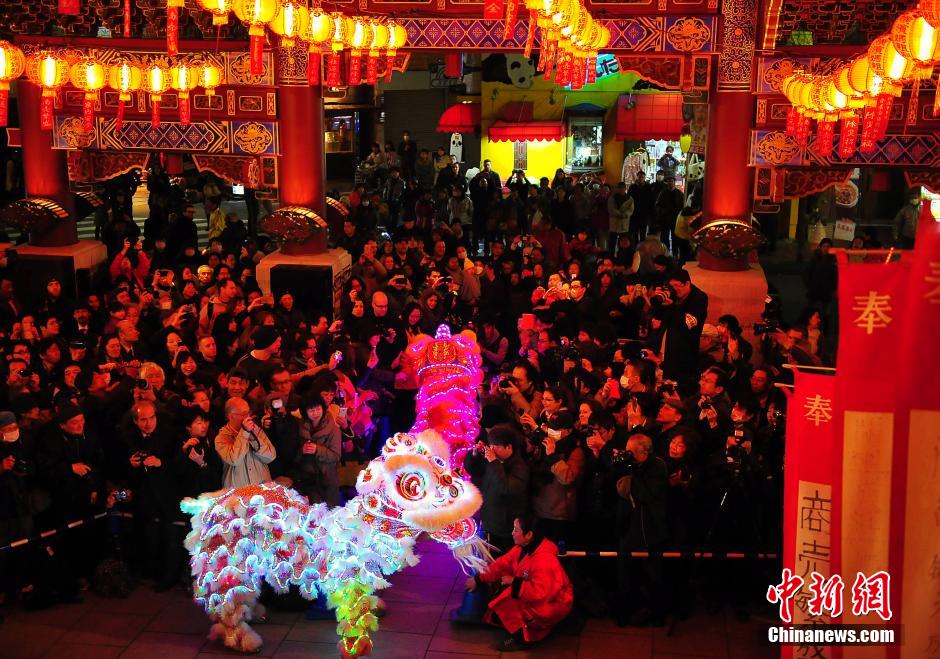 横滨中华街闹元宵观者如云