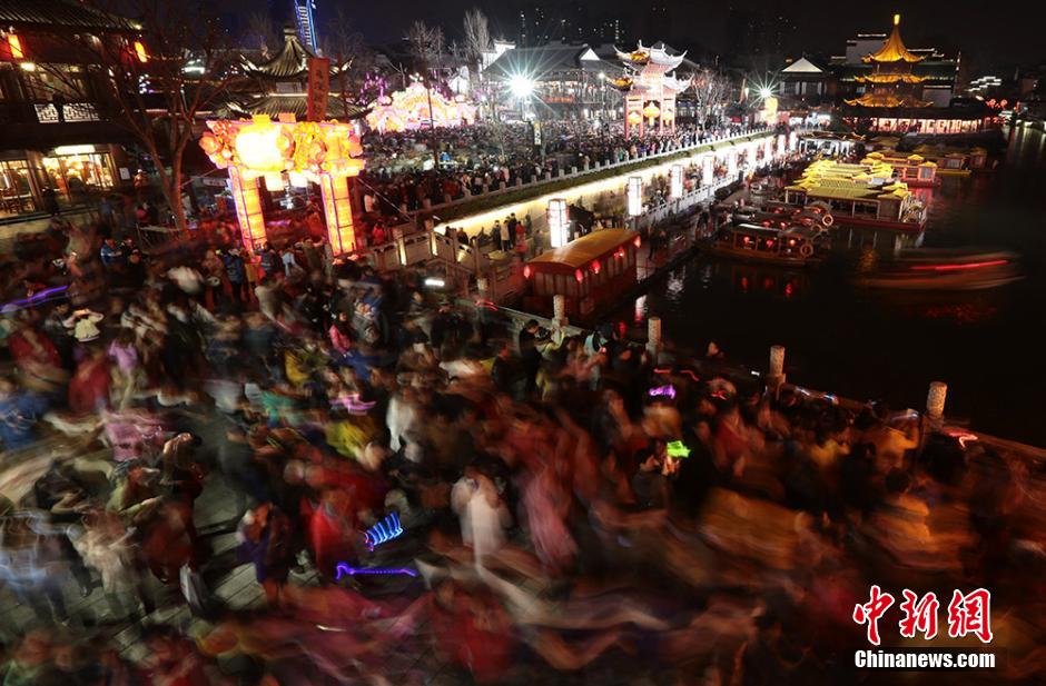 3月5日晚,数十万市民和游客前往南京夫子庙景区内欣赏秦淮灯会,瞬间开启“人人人人人”模式。据当地警方发布的信息显示,共有52万游客前往夫子庙及老门东景区逛灯会、闹元宵。秦淮灯会又称“金陵灯会”,是流传于南京地区的特色民俗文化活动,主要在每年的春节至元宵节期间举行。 泱波 摄