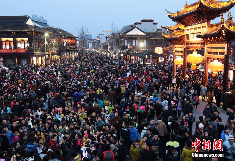 3月5日晚,数十万市民和游客前往南京夫子庙景区内欣赏秦淮灯会,瞬间开启“人人人人人”模式。 泱波 摄