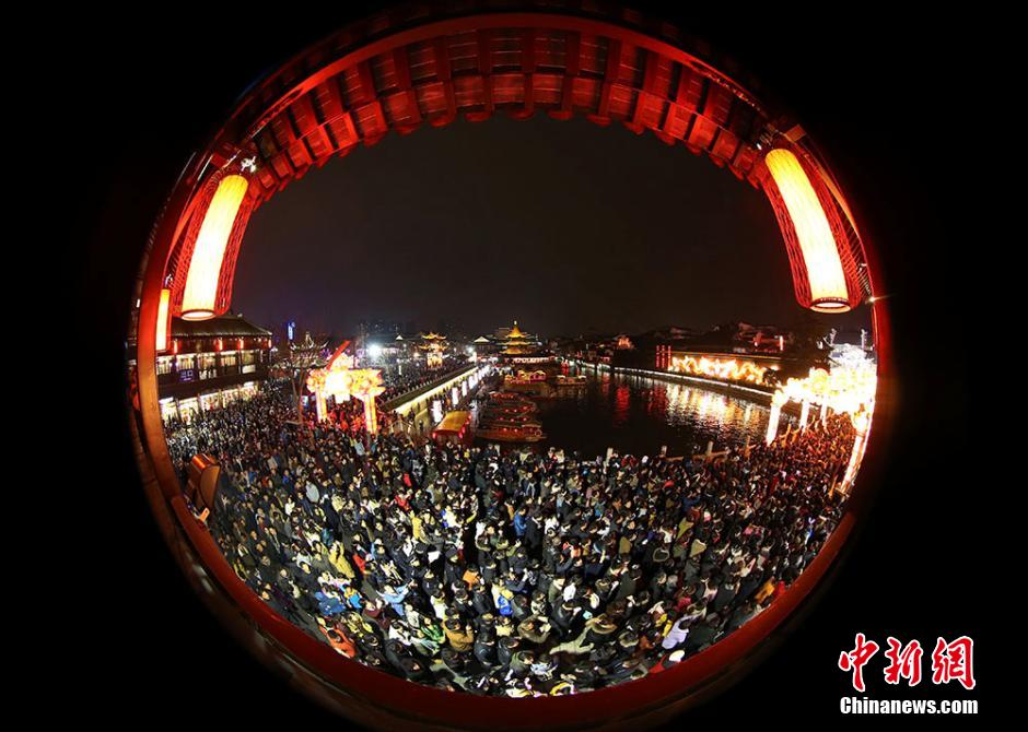 3月5日晚,数十万市民和游客前往南京夫子庙景区内欣赏秦淮灯会,瞬间开启“人人人人人”模式。泱波 摄