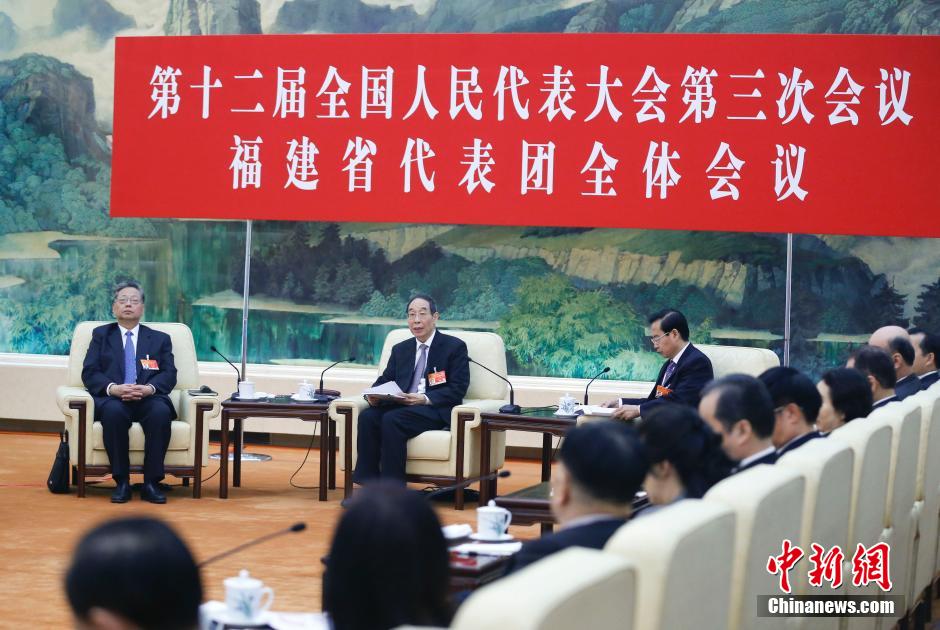 3月6日,参加十二届全国人大三次会议的福建省代表团举行全体会议审议政府工作报告。中新社发 杜洋 摄