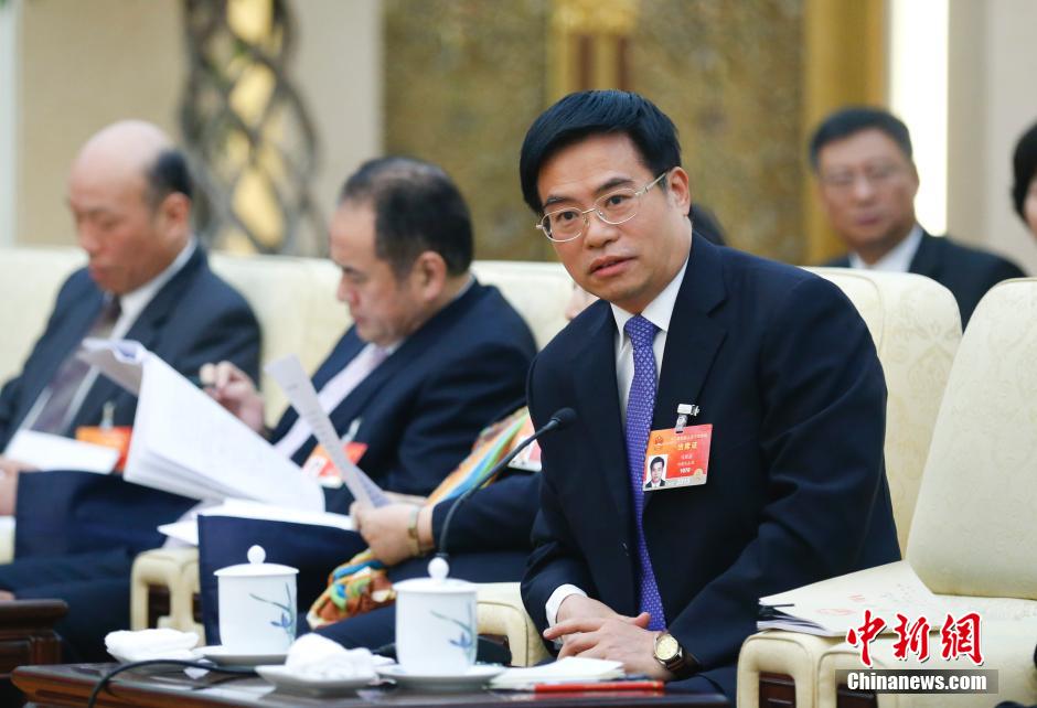 3月6日,参加十二届全国人大三次会议的福建省代表团举行全体会议审议政府工作报告。全国人大代表、莆田市委书记周联清参加会议。中新社发 杜洋 摄
