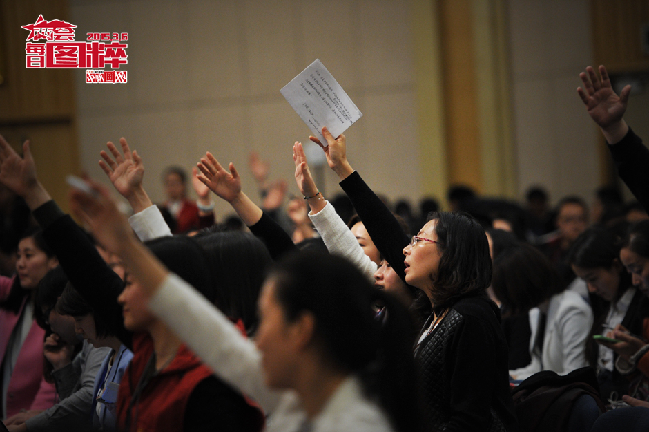 3月5日15时,十二届全国人大三次会议新闻中心在梅地亚中心举行记者会,国家发展和改革委员会主任徐绍史就“经济社会发展与宏观调控”相关问题回答中外记者的提问。记者争相提问。中新社发 张浪 摄
