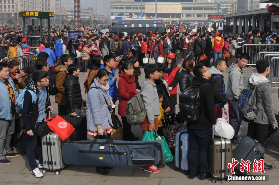 3月6日,山西太原火车站,旅客开始返程之旅。元宵节后,学生返校客流与务工客流叠加,中国铁路再次迎来春运客流高峰。武俊杰 摄