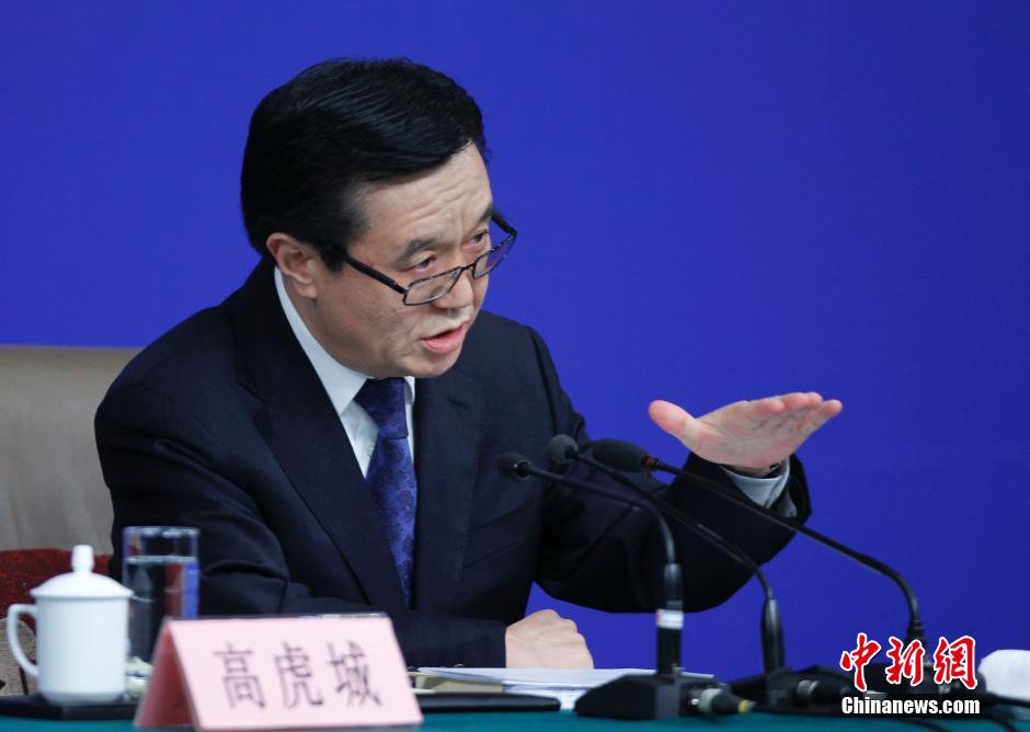 3月7日,十二届全国人大三次会议新闻中心举行记者会。商务部部长高虎城就“培育消费新亮点 构建开放新格局”的相关问题回答中外记者的提问。高虎城表示,2015年和2014年整体国内外形势大体相当,国际需求仍将维持一个微弱的增长,在此前提下,完成6.1%左右的进出口增长目标是有信心的。 中新社发 杜洋 摄