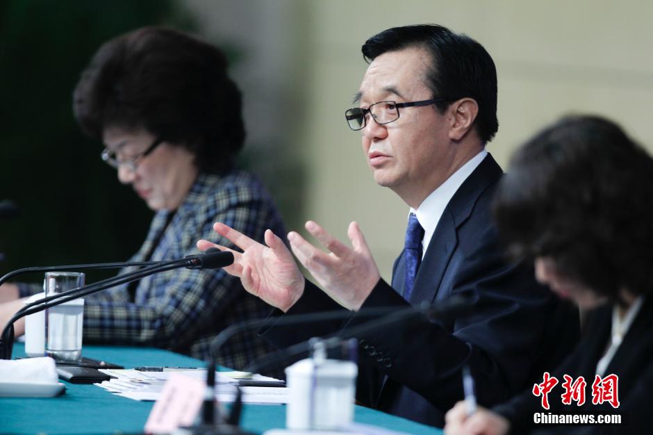 3月7日,十二届全国人大三次会议新闻中心举行记者会。商务部部长高虎城就“培育消费新亮点 构建开放新格局”的相关问题回答中外记者的提问。高虎城表示,2015年和2014年整体国内外形势大体相当,国际需求仍将维持一个微弱的增长,在此前提下,完成6.1%左右的进出口增长目标是有信心的。 中新社发 杜洋 摄