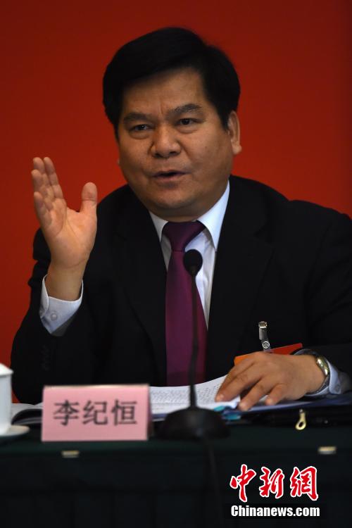 3月7日,参加十二届全国人大三次会议的云南代表团在中国职工之家全体会议审议政府工作报告,审查计划报告和预算报告。云南省委书记李纪恒参加会议并回答记者提问。中新社记者 金硕 摄