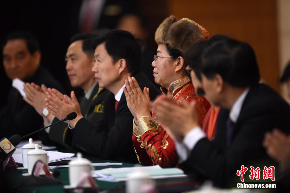 3月7日,参加十二届全国人大三次会议的云南代表团在中国职工之家全体会议审议政府工作报告,审查计划报告和预算报告。中新社记者 金硕 摄