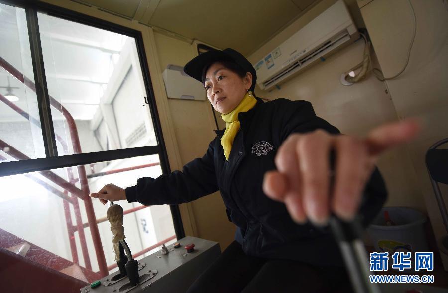 3月6日,天车组的蒋支群在天车操作间内进行吊装作业。新华社记者 薛玉斌 摄