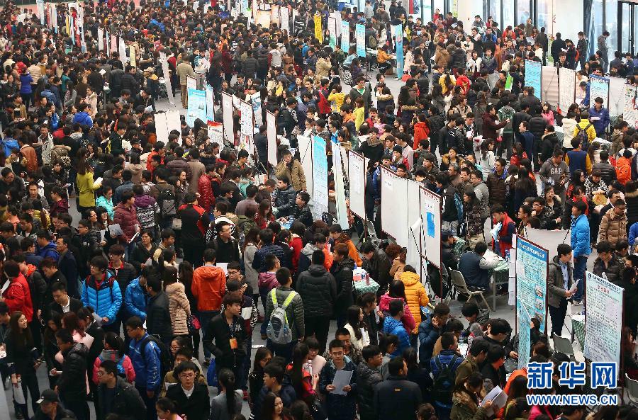 当日,“2015年外地院校天津生源高校毕业生就业洽谈会”在天津工业大学举行。这是春节后天津首场专门面向2015届高校毕业生的公益性招聘会,参会单位超过180家,共为毕业生提供就业岗位约3700个。新华社发(刘东岳 摄)