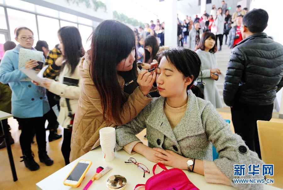 3月7日,南开大学女生专场招聘会现场提供免费“职场妆容体验”。