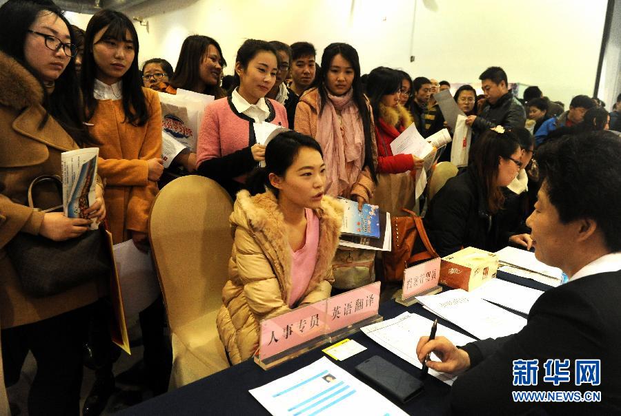 当日,中国·大连2015春季人才招聘暨大中专毕业生就业洽谈会在大连世博广场举行。来自国内外的518家招聘单位为求职者提供岗位。新华社发(吕文正 摄)