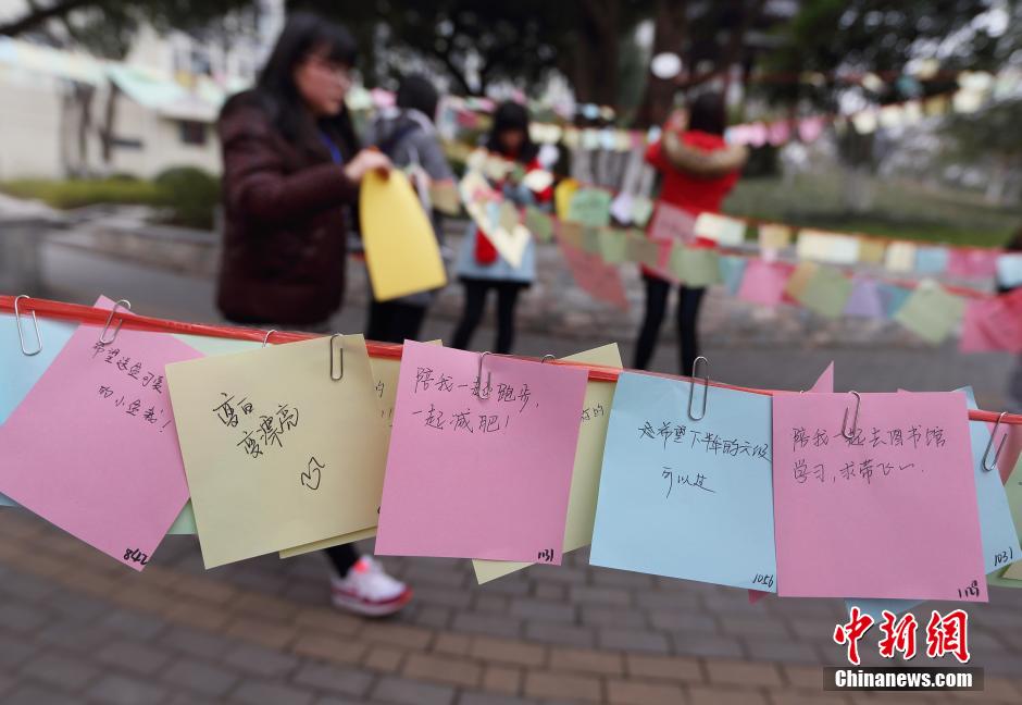 图为女大学生们在悬挂心愿卡。 中新社发 泱波 摄