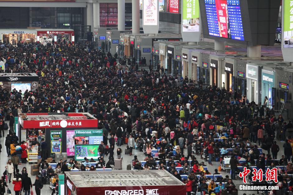 图为部分受影响列车进站检票口拥挤大量人群。中新社发 张亨伟 摄