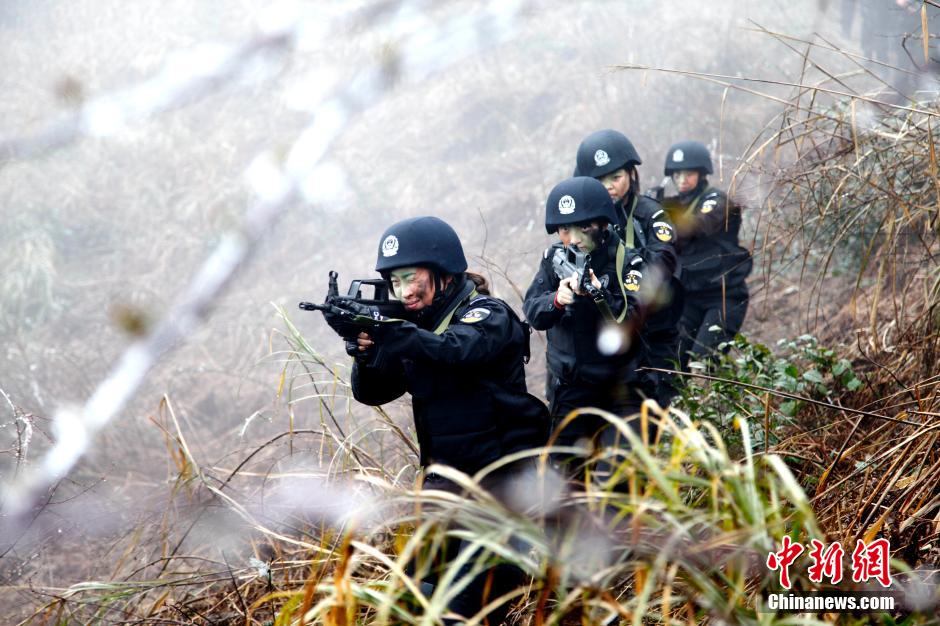 连日来,贵州省黔南州海拔1700多米的螺丝壳山顶一直被低温所控制,依然是一片冰天雪地的景象。3月6日,贵州省黔南州公安局特警支队十余名女队员被无情地扔进这座大山,在严酷的环境中开展山地丛林战术训练。在冰的世界里,这群年轻的女特战队员以这样的方式渡过她们的节日——“三八妇女节”。吴青原 摄