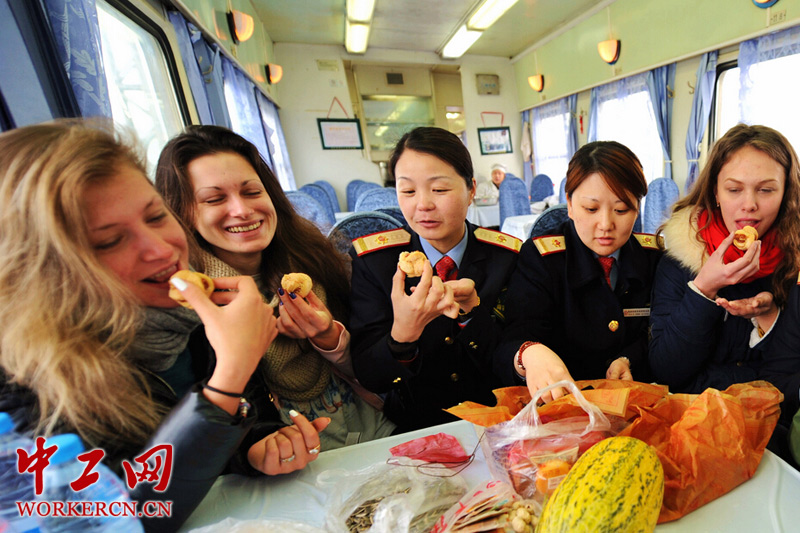 3月8日,赣州至南昌的L3612次列车上工作人员和来自乌克兰的旅客在列车上欢度自己的节日。当日是“三八”国际劳动妇女节也是周末假日,来中国读书的乌克兰女孩SOFIIA(白色衣服)、安娜(黑色衣服)和尼卡(蓝色衣服)在中国的列车上和大家一起度过了一个别样的妇女节,不仅享受到了中国女同胞的热情接待,还吃到了富有中国特色的小吃,芬芳的节日绽放出中乌两国女同胞别样美丽。