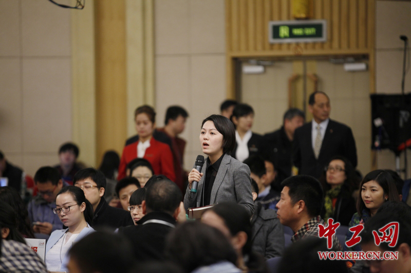 3月9日上午,全国政协十二届三次会议召开主题为“政协委员谈发挥人民政协在社会主义协商民主中的重要作用”的记者会,会议邀请了全国政协委员陈惠丰、全国政协常委周汉民以及全国政协委员唐晓青、王俊峰、姚明回答记者提问,全国政协委员姚明在谈到明星委员的话题时说:“明星委员是客观存在的一个社会现象,包括我自己在内,我们作为委员就应该做出有质量的提案,向社会上发出声音。我希望大家更多地去关注我们担任委员之后所做的事情,关注担任委员之后所做的提案质量、方向以及发出的声音。”图为现场记者提问。中工网记者韩靖摄