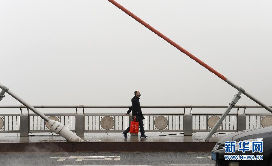 3月9日,在江西南昌八一大桥上,市民在浓雾中前行。江西省气象台3月9日5时3分发布大雾橙色预警信号,目前南昌、九江、景德镇、上饶、吉安、抚州六市局部地区已经出现大雾,其中南昌市能见度不足100米,预计未来6小时,江西省中北部大部分地区都将出现大雾。新华社记者 万象 摄