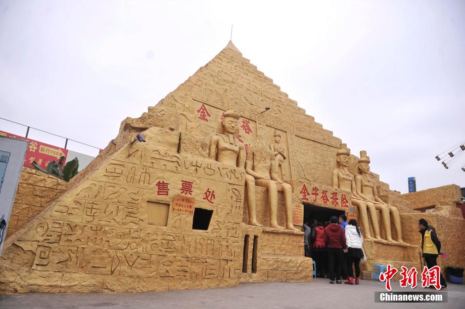 3月5日,重庆一景区“金字塔”吸引不少游客排队进入探险。陈超 摄