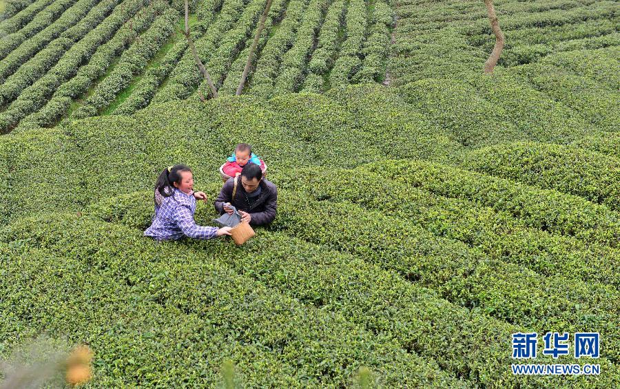 3月9日,茶农在湖北省恩施市芭蕉侗族乡灯笼坝村采摘早春茶。连日来,随着气温升高,湖北省恩施土家族苗族自治州恩施市23万亩富硒早春茶渐次进入采摘期,当地茶农抢抓农时采摘早春茶上市销售。新华社发(杨顺丕 摄)