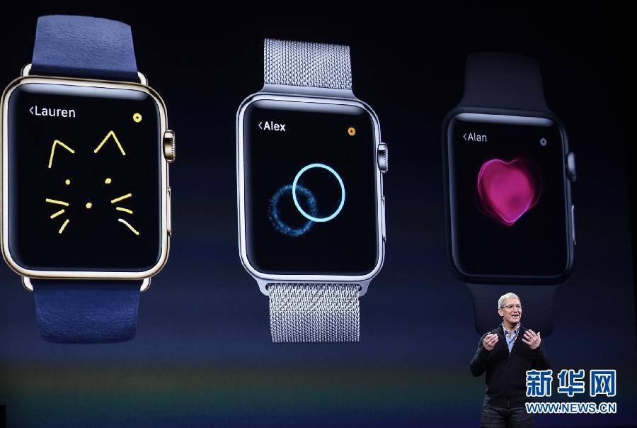 3月9日,在美国加州旧金山,苹果公司首席执行官蒂姆·库克在发布会上介绍Apple Watch。当日,苹果公司在美国加州旧金山举行2015年春季发布会。 新华社发