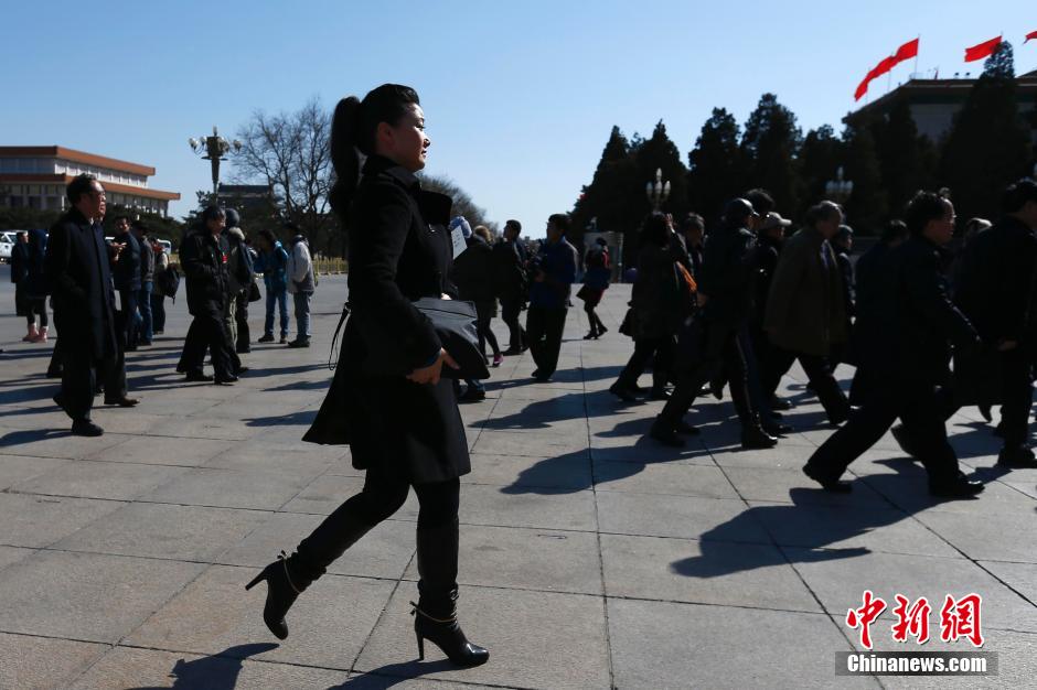 3月9日下午,全国政协十二届三次会议在人民大会堂举行第二次全体会议。宋祖英步入会场。中新社发 富田 摄