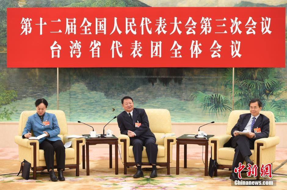 3月9日,十二届全国人大三次会议台湾省代表团在人民大会堂审议全国人大常委会工作报告。中新社发 陈文 摄