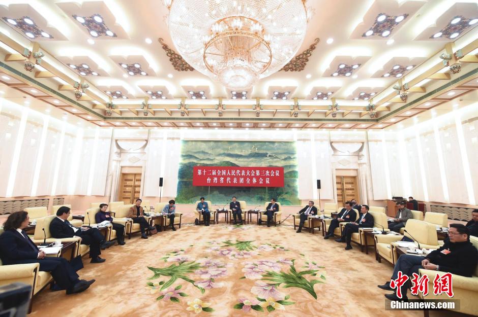 3月9日,十二届全国人大三次会议台湾省代表团在人民大会堂审议全国人大常委会工作报告。中新社发 陈文 摄