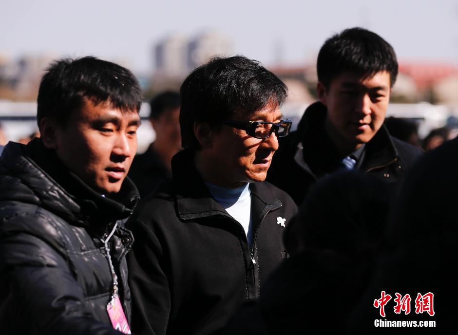 3月9日下午,全国政协十二届三次会议在北京人民大会堂举行第二次全体会议,16位委员围绕经济建设和生态文明建设主题作大会发言。成龙委员走入大会堂。中新社发 杜洋 摄