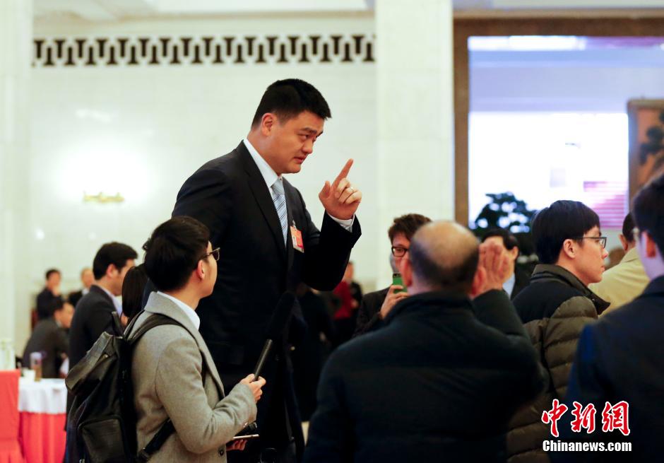 3月9日下午,全国政协十二届三次会议在北京人民大会堂举行第二次全体会议,16位委员围绕经济建设和生态文明建设主题作大会发言。姚明委员走入大会堂。中新社发 杜洋 摄