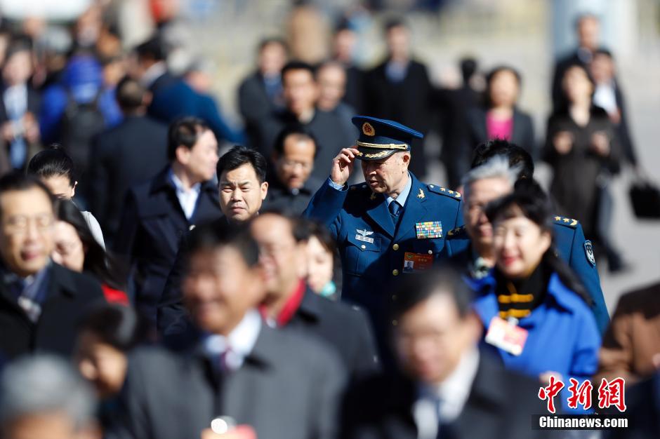 3月9日下午,全国政协十二届三次会议北京人民大会堂举行第二次全体会议,16位委员围绕经济建设和生态文明建设主题作大会发言。杨国海委员步入会场。中新社发 盛佳鹏 摄