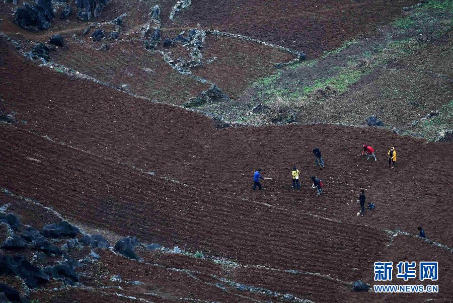 3月10日,广西大化县板升乡弄顶屯瑶族群众在田间抢种。连日来,地处广西大化瑶族自治县的百弄山区迎来降雨天气,当地瑶族群众抓住有利时机,抢耕抢种,全力抓好春耕生产。 新华社记者 黄孝邦 摄