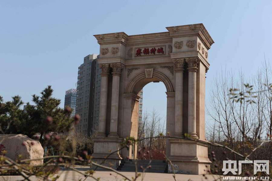 2015年03月10日,山东省日照市,一商业地产广场,矗立的山寨“凯旋门”。
