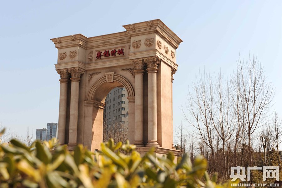 2015年03月10日,山东省日照市,一商业地产广场矗立的山寨“凯旋门”。