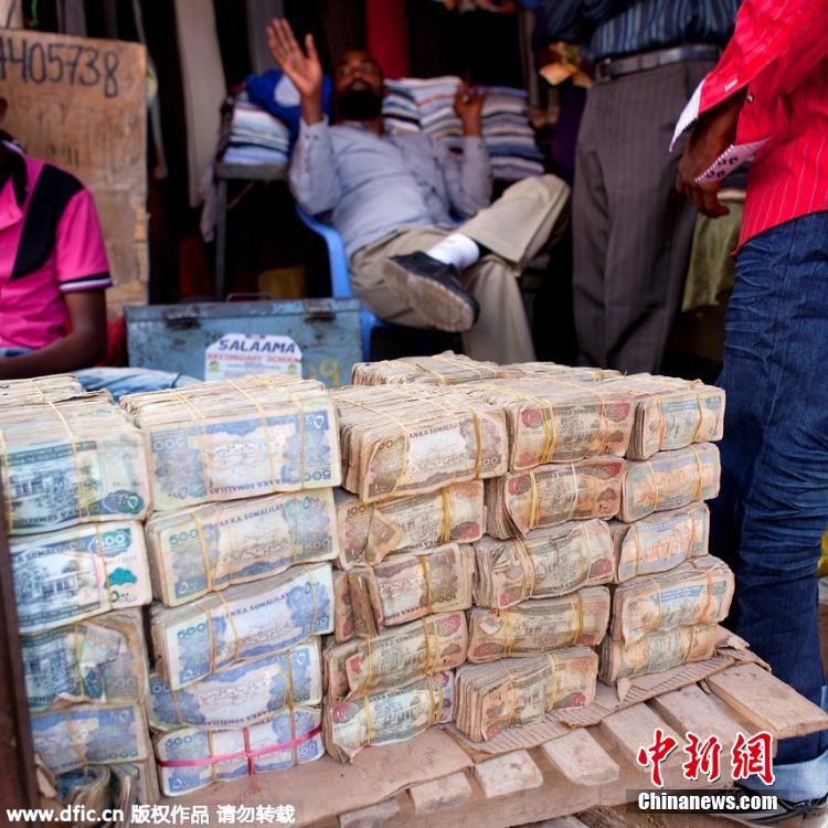 3月10日消息,全球唯一的钞票市场——索马里兰的哈尔格萨钞票市场的钞票成捆出售。据了解,索马里兰目前使用的货币是索马里兰先令,于1994年由索马里兰国家银行发行,当前的币值大约是1美元兑换7000先令。由于索马里兰的经济较差,民众对本币没有信心,所以愿意兑换国外的货币,此外,国家对钞票的交易不禁止,变成了合法买卖。图片来源:东方ic 版权作品 请勿转载