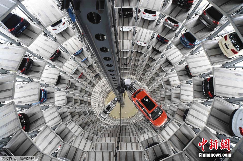 3月10日消息,探访位于德国沃尔夫斯堡的大众汽车生产线,层层叠落的汽车交付塔似万花筒甚是壮观。