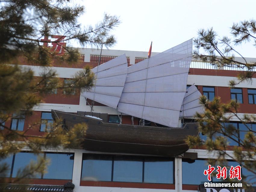 3月11日,在长春市一建筑外墙上,悬挂着一艘巨大的帆船。这艘帆船船体长8米,宽1.2米,高近8米,与真船是一比一造型,采用硬塑材质。据了解,这艘船的悬挂单位是一家新型企业孵化器公司,将这艘帆船摆在这里是希望取一个好的寓意,像摆渡人一样,搭载着有梦想的人扬帆远航,一帆风顺。张瑶 摄