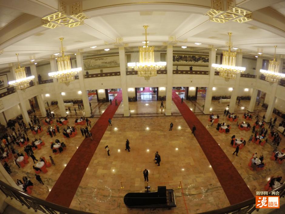 两会会期过半,电视、报纸、网络、手机……这些天,我们的视线被各种各样的两会场景占据。考虑到大家可能已经有点视觉疲劳,我们特别推出一组视角独特的两会照片。这些照片都是由新华社的摄影记者们用小巧、方便、可固定的GoPro相机拍摄(如上图所示),为了让您看到不一样的两会,他们可真是“蛮拼的”!看得全!这是3月10日拍摄的北京人民大会堂中央大厅。 新华社记者吕迅摄 图片来源:新华网