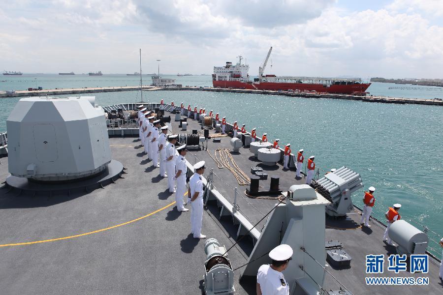 3月10日,中国海军两栖船坞登陆舰长白山舰驶入新加坡樟宜港,舰员在甲板上分区列队。经过18个昼夜的连续航行,中国海军第十八批护航编队于当地时间3月10日抵达新加坡樟宜港停靠。编队由两栖船坞登陆舰长白山舰、导弹护卫舰运城舰和综合补给舰巢湖舰组成。停靠期间,编队将补给燃油、蔬菜、水果等物资,有计划地向新加坡海军方和当地民众开放参观舰艇。新华社记者 张月琳 摄 图片来源:新华网