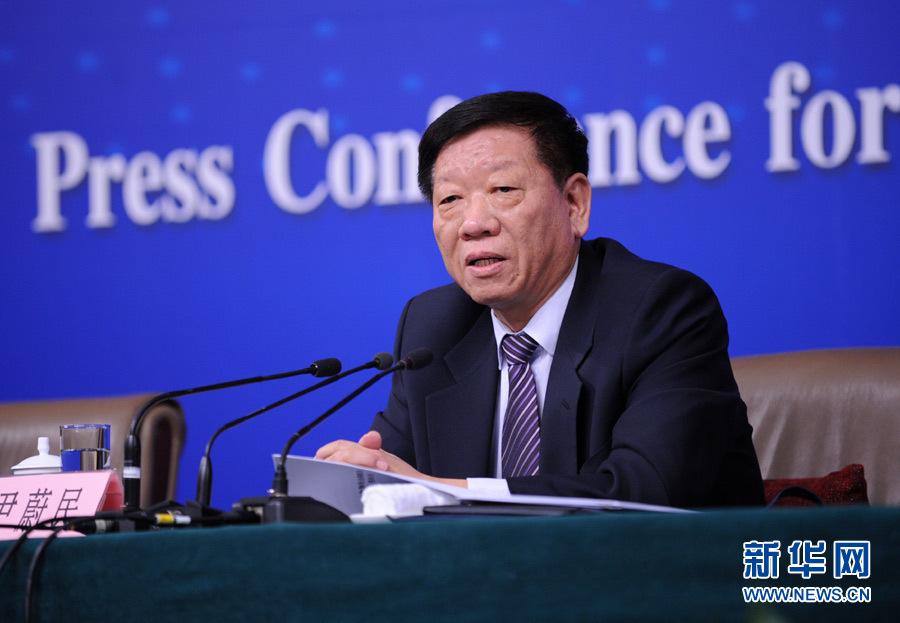 3月10日,十二届全国人大三次会议新闻中心举行记者会,邀请人力资源和社会保障部部长尹蔚民、副部长胡晓义对就业和社会保障的相关问题回答中外记者提问。图为人力资源和社会保障部部长尹蔚民回答记者提问。新华网/中国政府网 周柏豫 摄 图片来源:新华网