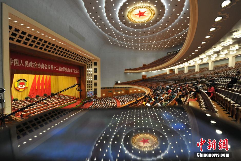 3月11日,全国政协十二届三次会议在人民大会堂举行第四次全体会议,多名政协委员就有关议题作大会发言。中新社发 张斌 摄