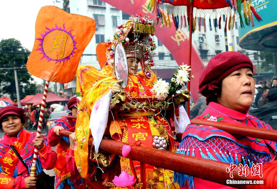 3月11日,“天下娘奶回娘家”活动在福州仓山区临水夫人陈靖姑故居举行。 中新社发 刘可耕 摄