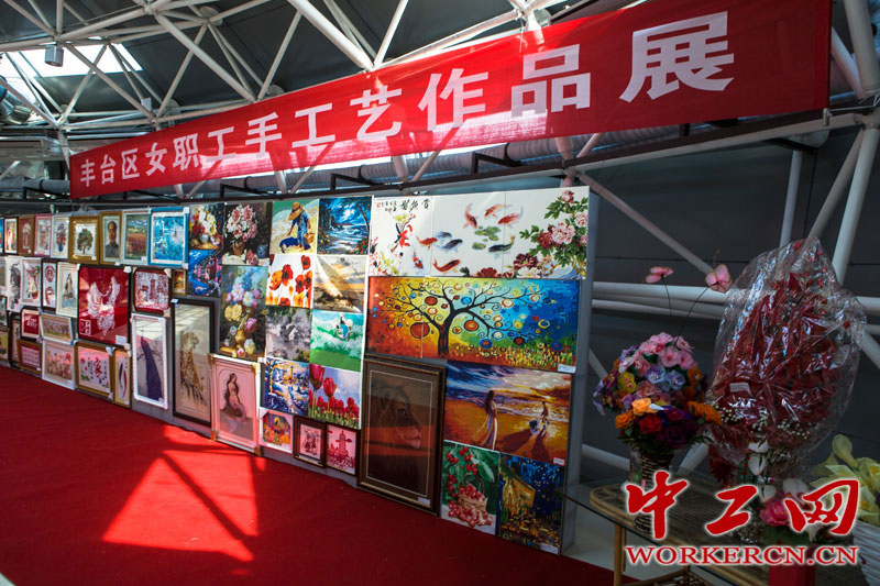 这些出自女工勤劳灵巧双手的作品琳琅满目、种类繁多:有十字绣、钻石画、豆画、油画、剪纸、布艺拼贴、彩泥创作、娟人制作、插花、贝壳拼贴画、手工编织类、珠编类摆件等百余种。作品多姿多彩、立意鲜明、格调优雅、做工精湛,堪比专业水准。