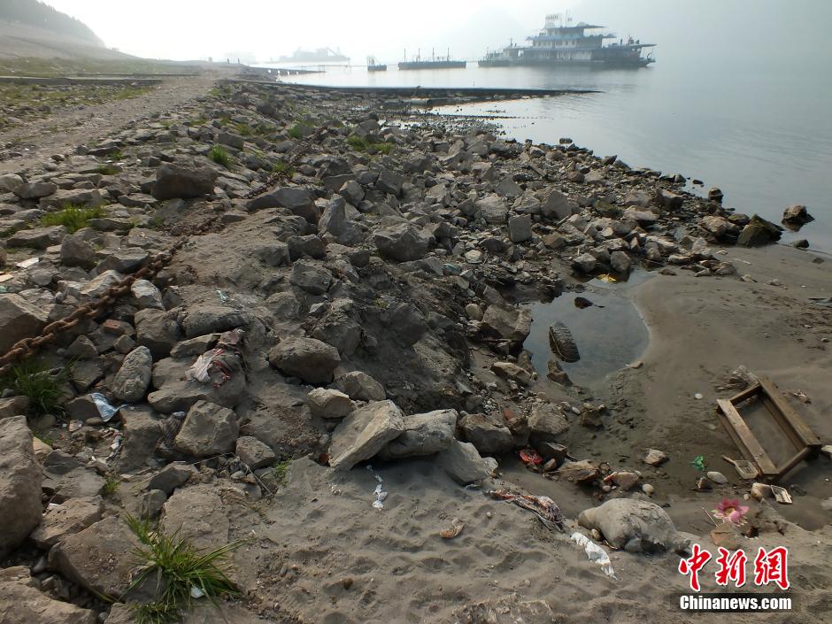 3月12日,湖北宜昌,处于枯水期的长江大面积江滩裸露,成为一道别致的景观。中新社发 刘君凤 摄