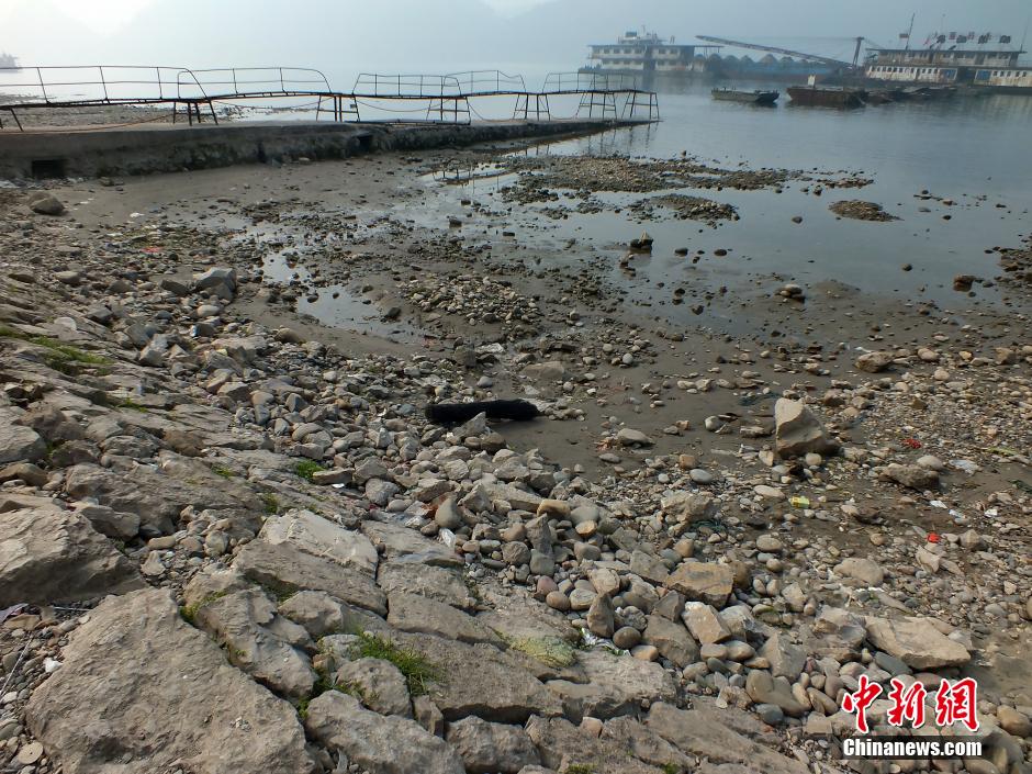 3月12日,湖北宜昌,处于枯水期的长江大面积江滩裸露,成为一道别致的景观。中新社发 刘君凤 摄