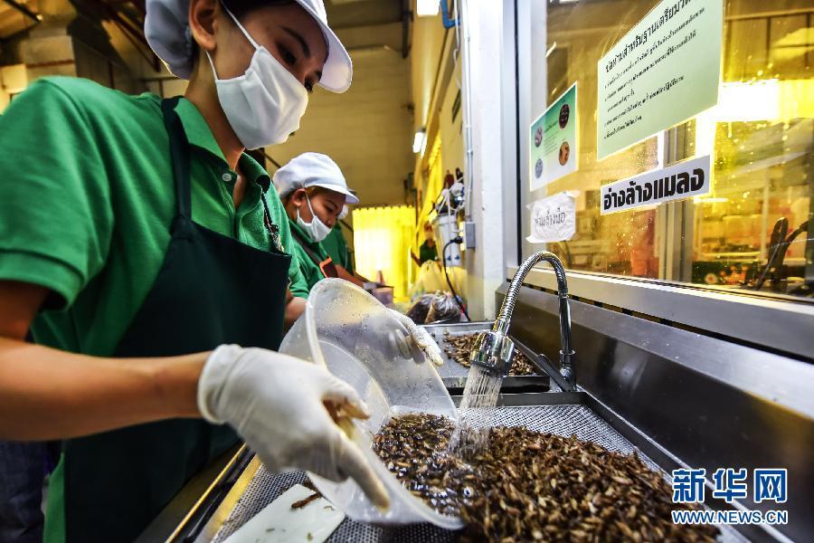 3月12日,在泰国中部城市暖武里,昆虫零食生产厂商“微笑公牛”的工人清洗用于烹炸的蟋蟀。近年,泰国昆虫食品产业发展迅速,由昆虫原料制成的零食被越来越多的消费者所接受。成立于2012年的“微笑公牛”是一家专门从事昆虫零食生产的新兴企业。该公司采用空气烹炸技术生产的炸蟋蟀、炸蚕蛹等袋装零食已进入泰国的超市,为消费者提供了新的零食选择。新华社记者 李芒茫 摄 图片来源:新华网