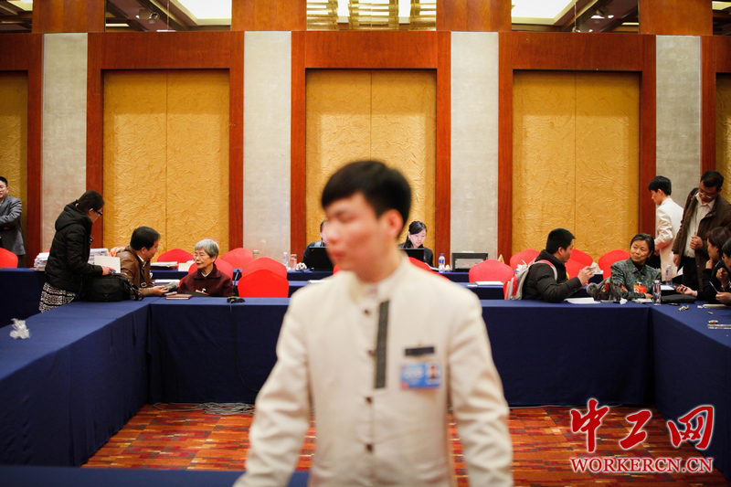 2015年3月3日,全国政协十二届三次会议在北京召开,据了解,今年采访报道全国“两会”的记者超过3100人。图为妇联界别联组会议后记者采访政协委员。中工网记者韩靖摄