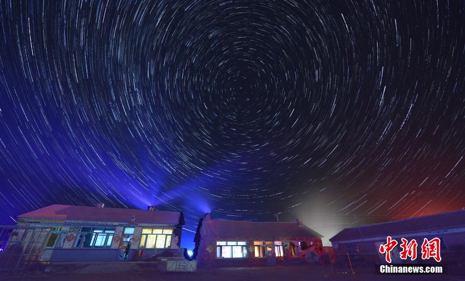 2014年10月至2015年3月上旬在祖国北疆中俄边境北纬51°拍摄了“雪地”“节日”“华俄后裔百年老村”“白鹿岛”“标志性建筑”星轨组图。这里冬季气温达零下40°~50°,景色浑然天成,天空明亮的星轨结合大兴安岭地区独特的风土人情,给人一种宁静自然之美的震撼,犹如童话般使人流连忘返。中新社发 张富 摄